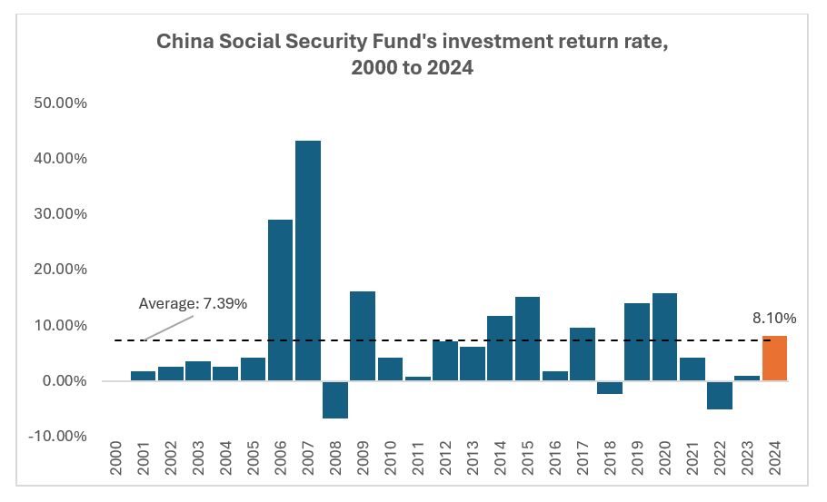 China’s Social Security Fund, the strategic reserve fund that complements the country’s basic pension funds, achieved an 8.1% investment return in 2024, equivalent to 218.42 billion yuan ( US$30.68 billion ), marking its best performance since 2021.